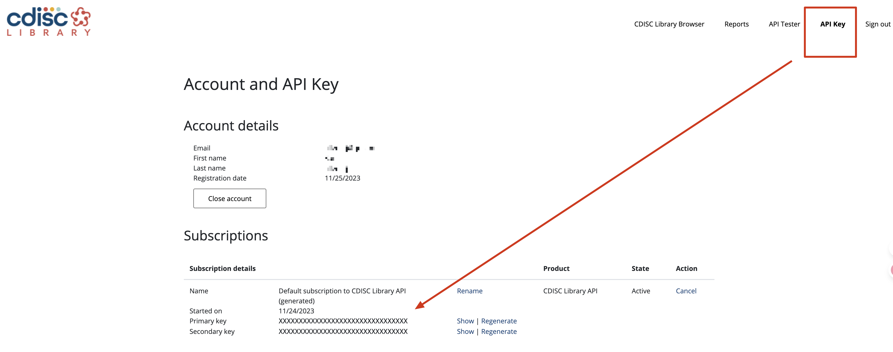 和绝大多数API平台申请流程类似,我们需要先有一个CDISC账户,然后去网站(https://api.developer.library.cdisc.org/profile)申请个人的API key。